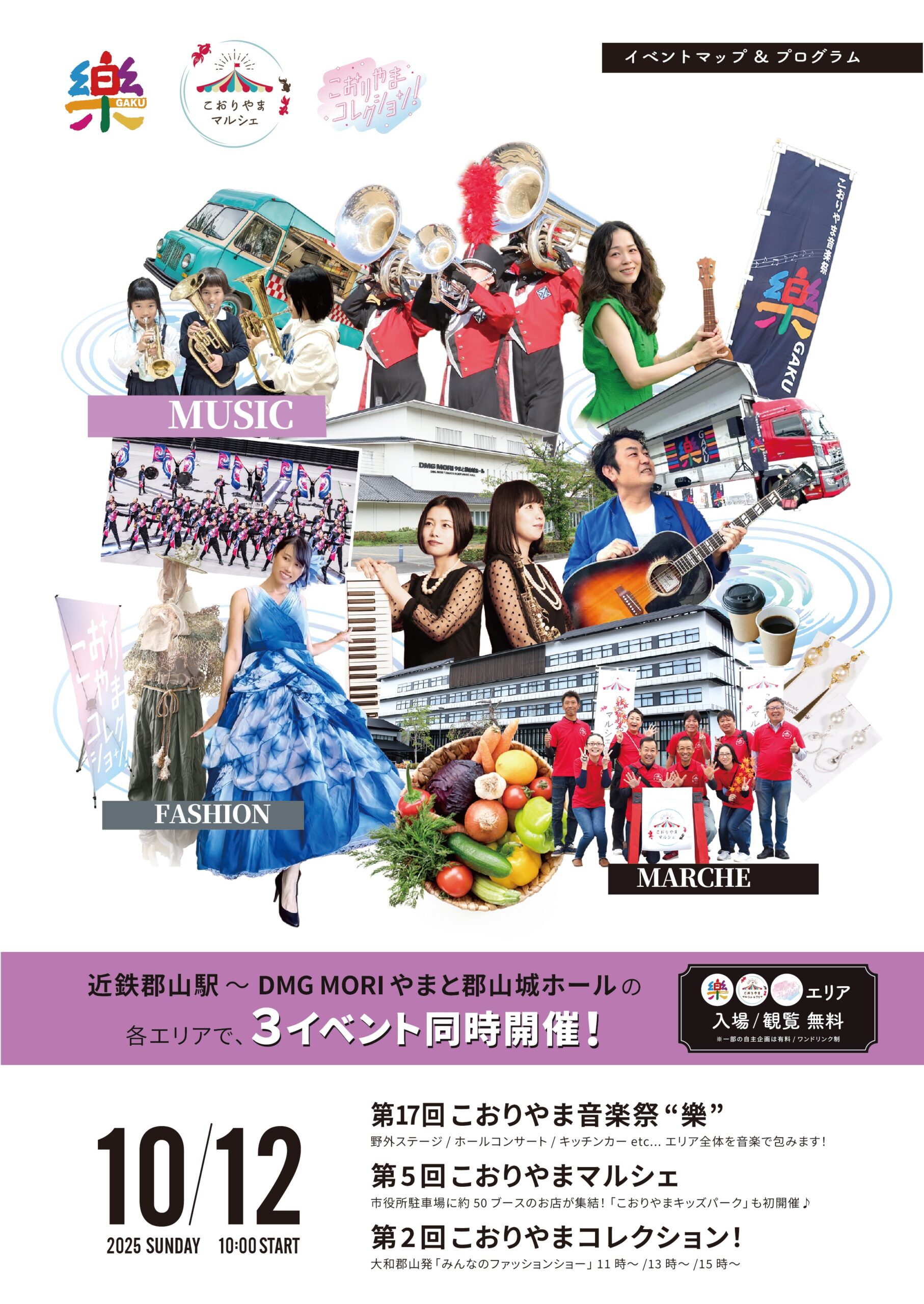 こおりやま音楽祭”樂”、こおりやまコレクション!、こおりやまマルシェ共通パンフレットです